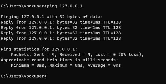 The loopback address was pinged in order to determine if the local network stack was operating correctly.